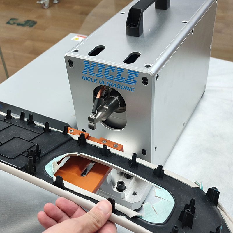 | 频率/功率 28khz 800w | 主要用于:汽车AB柱皮革包覆,将皮革通过超声波焊接固定在汽车内饰塑料件上,效果稳定、牢固、操作简单。 |